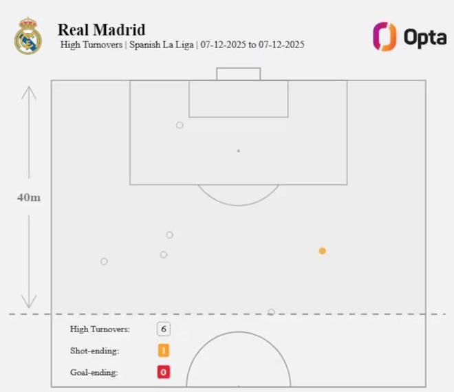 为了佐证这种观点,统计数据也随之而来。皇家马德里在进攻区域仅完成了6次抢断,比他们在西甲联赛中的平均水平少了近4次,而他们的PPDA值(因防守动作而让对手获得的传球次数)高达14次,比平均水平高出3.5。
